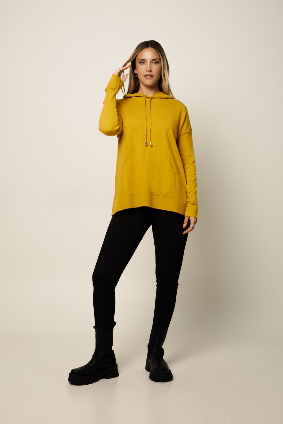 • buzo de lana liso capucha