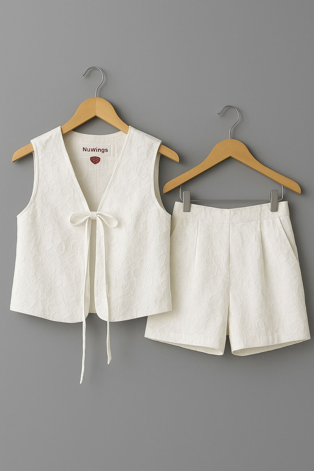 - conjunto de broderie , chaleco para atar y short