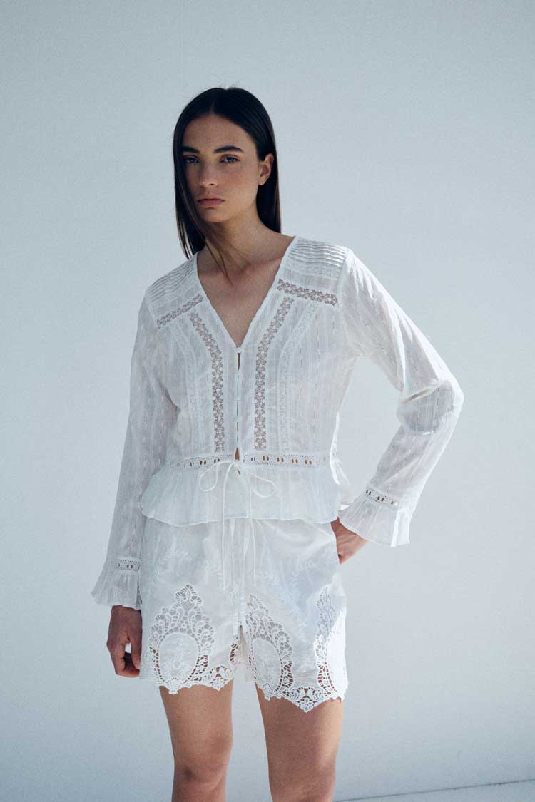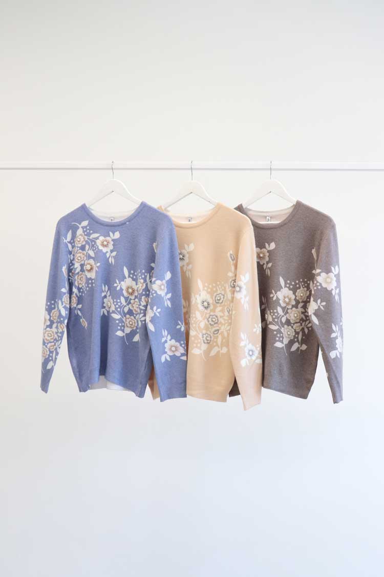 - sweater amplio manga 3/4 con detalle de flor con strass