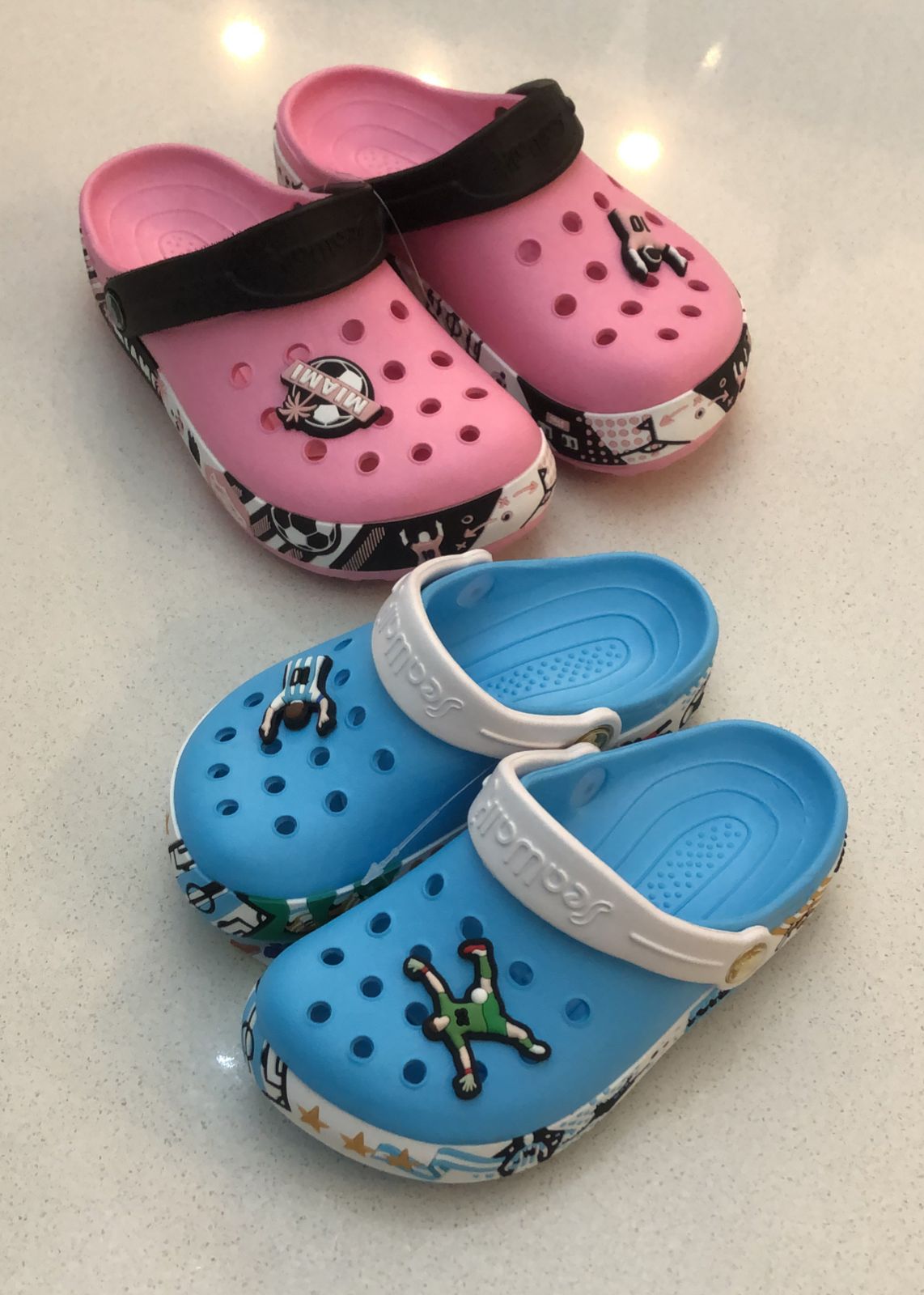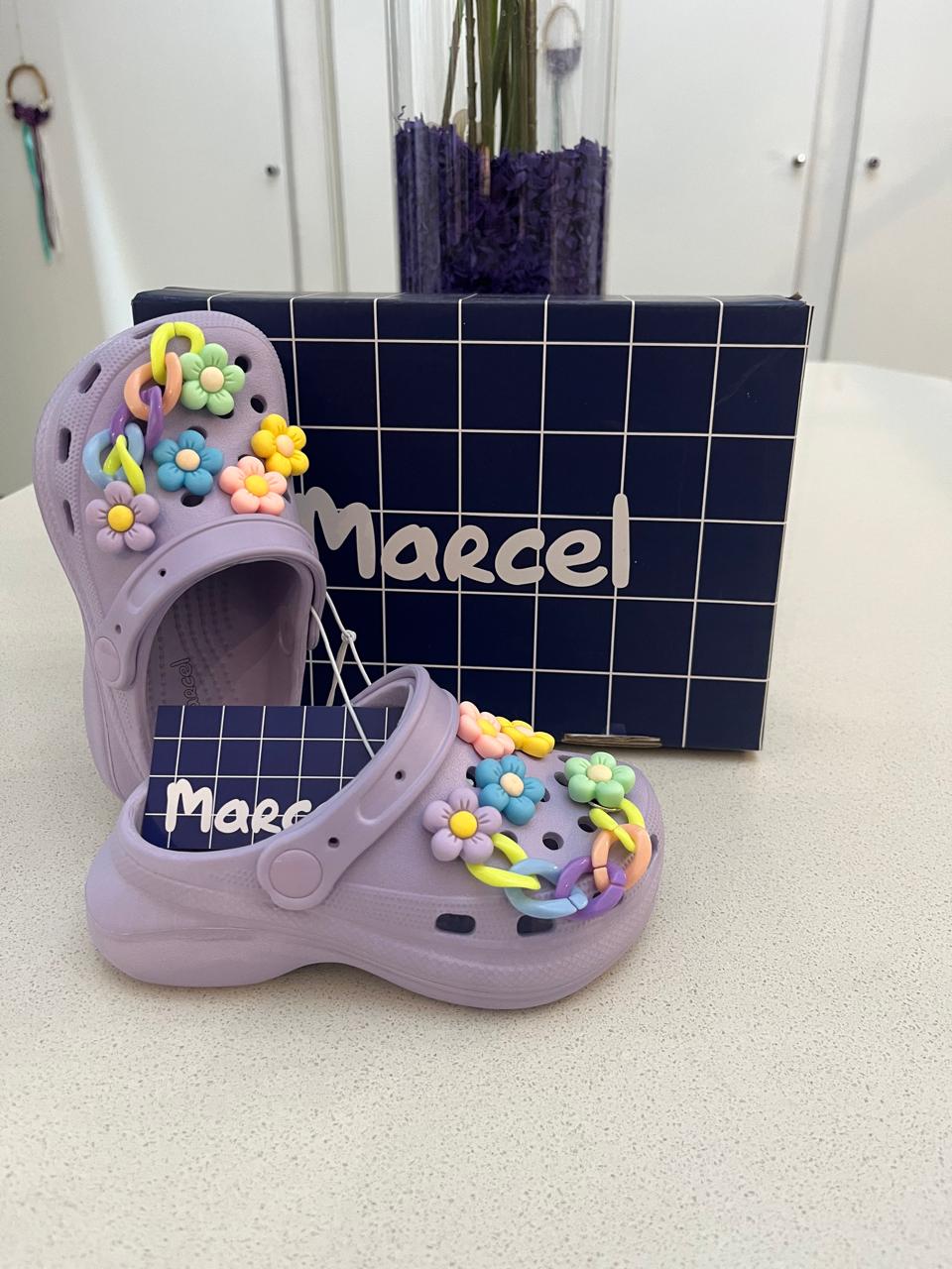 - crocs con pins de flores